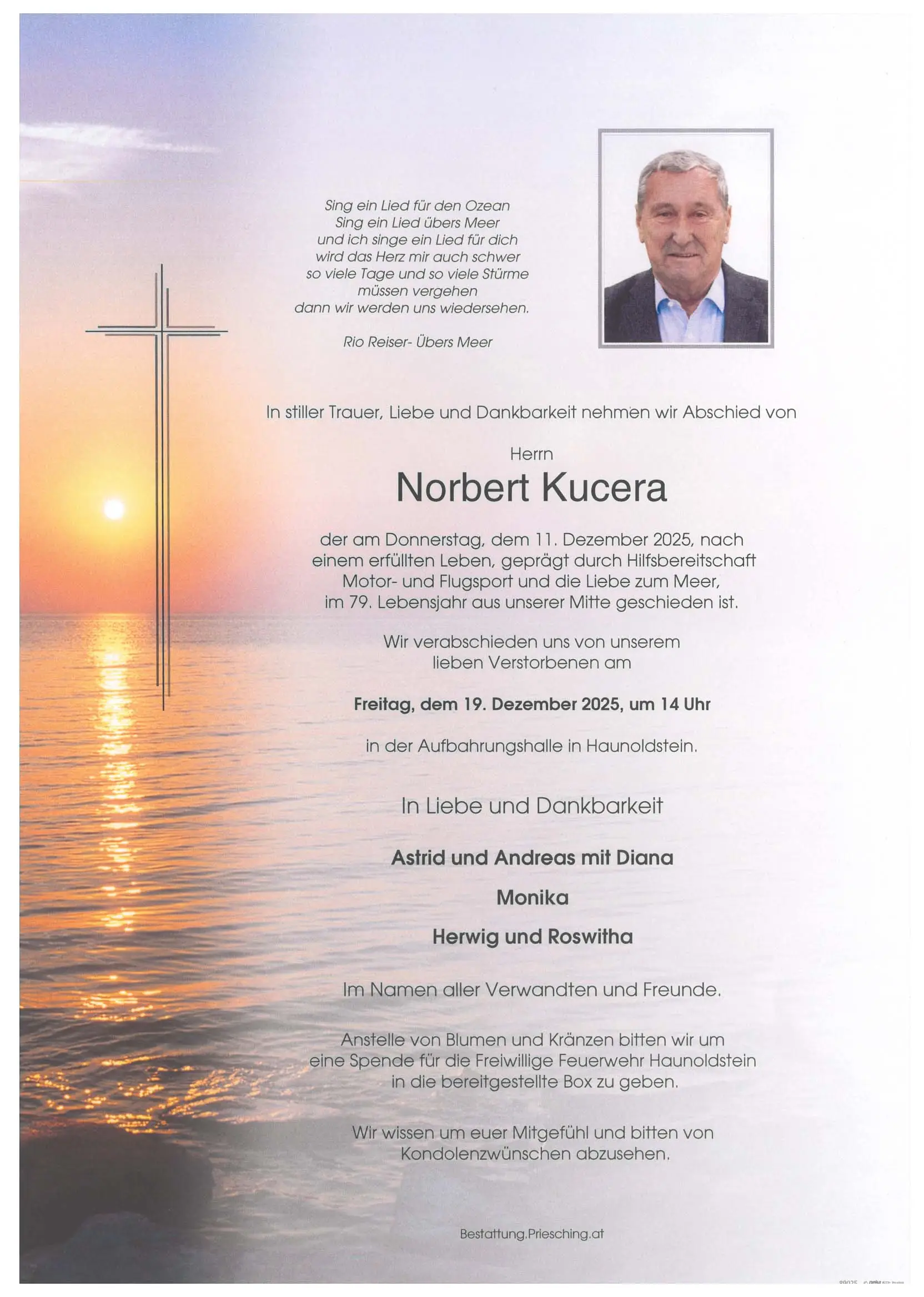 Die Verabschiedung findet in der Aufbahrungshalle Haunoldstein statt.